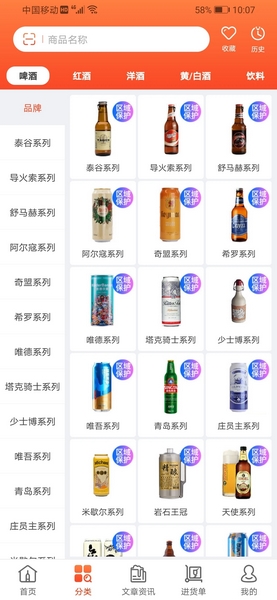 商品有各种分类,用户可以根据分类来查找自己感兴趣的酒。