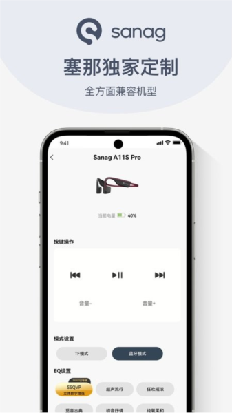 2, 塞那独家定制全方面兼容机型: 该应用专为Sanag品牌耳机设计,全面兼容多种机型,确保最佳的兼容性和稳定性。