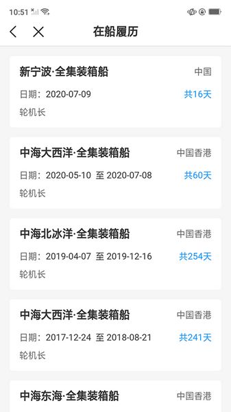 4、履历查询,个人在船的全部履历信息可以在次快捷查询;