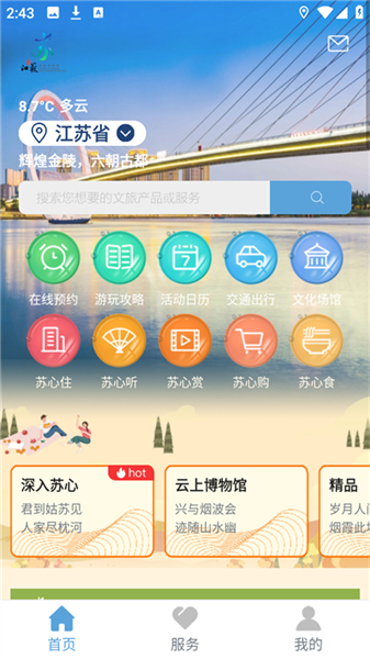 3、文化体验功能。所有的用户们能够在线上进行多重角度的江苏当地的文化体验风味。