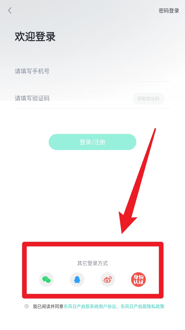 2. 若需第三方方式登录,可选择下方的微信、微博等账号完成授权绑定。