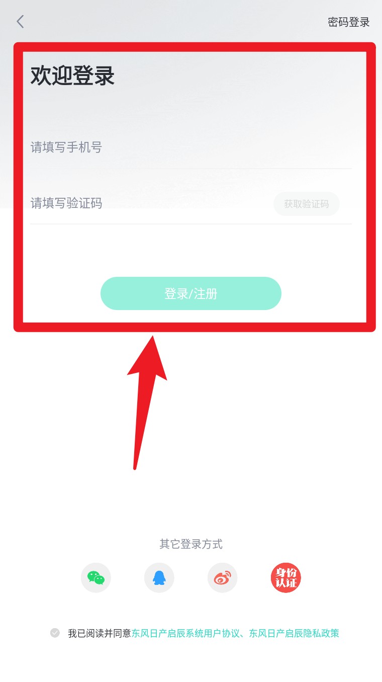 1. 打开App进入登录页面,输入手机号与验证码后点击登录、注册即可完成快速登录。