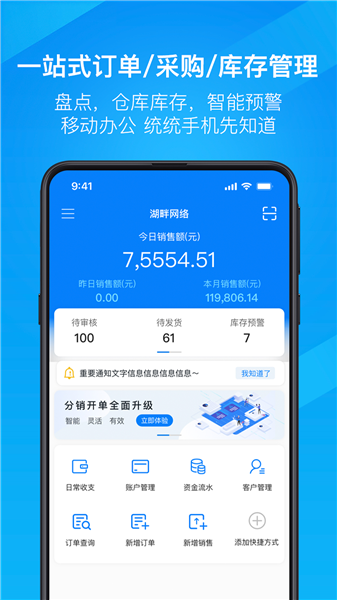 盘点,仓库库存,智能预警;移动办公,统统手机先知道。
