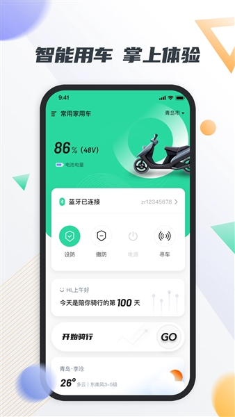 1、手机扫码,智能开锁。扫描车身或车锁上的二维码,即可智能开锁