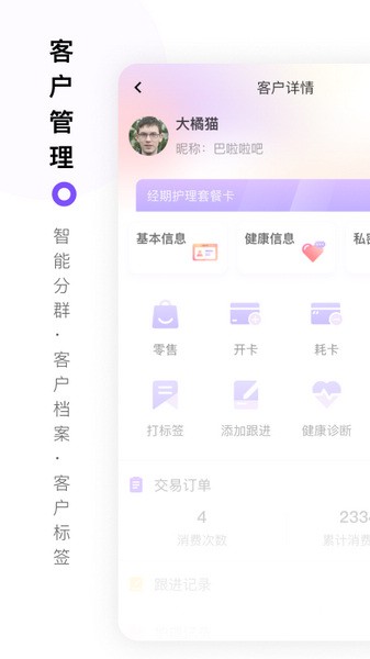 1、客户管理,智能分群,各种客户信息都是可以随时去了解,实时就可以查看;