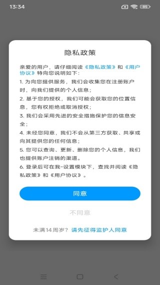 1、启动软件,查阅服务协议与隐私政策,点击同意进入后续操作。