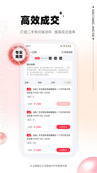 3、高效成交体验:一口价竞拍成交率高,让用户不用耽误很多时间,快速完成交易,提高购物效率。