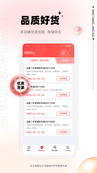 小当竞拍app是一款专注于二手交易的购物平台,用户可以在这里出售自己的各种闲置物品,也能购买自己心仪的二手商品。软件涵盖美妆、时尚、数码、家电等数十个品类,能够轻松满足大家的购物和出售需求。平台更有明价、暗价、一口价等多种出售方式可选,大家可以根据自己的想法来进行设置。作为一款专业的二手商品交易平台,软件还会为用户的资金安全保驾护航,大家可以放心买买买。