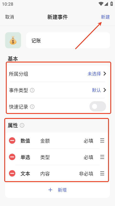 2、 自定义属性:为不同事件添加文本、评分或单选字段,灵活定义记录内容,满足个性化追踪需求。