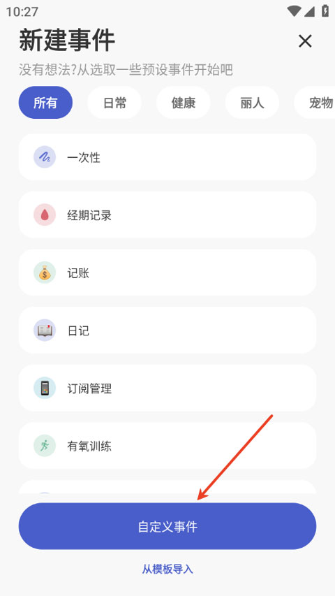 1、 事件模板库:内置多种生活场景模板,一键创建喝水、运动等记录,无需重复输入,节省大量设置时间。