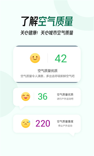 1、实时查看天气信息,立即获取您所在位置的0-15天内天气预报和空气质量污染指数。