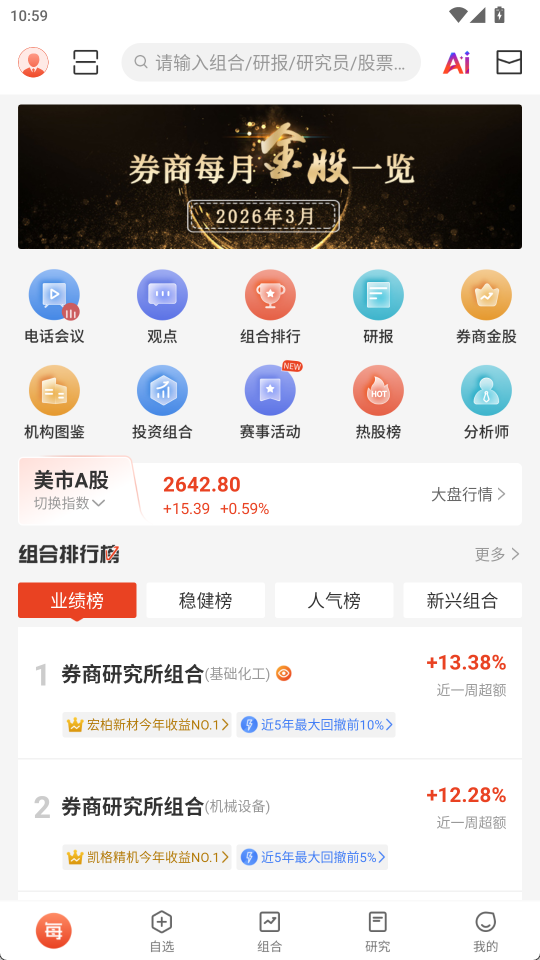 2、 模拟组合追踪:研究人员公开展示其模拟持仓与调仓历史,详细记录操作时间与变动理由。用户可随时查看组合业绩曲线,深入分析策略有效性,直观感受市场高手的实战思路与节奏。