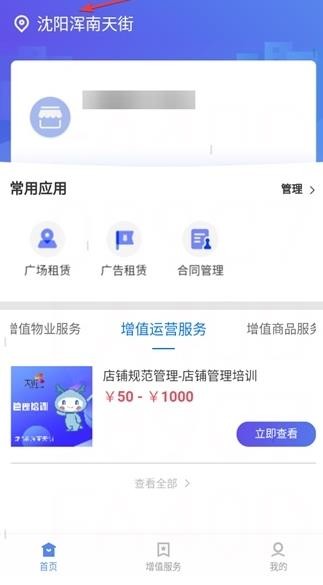 3、地址修改完成后,可在功能列表中选择所需服务,例如广场租赁功能。
