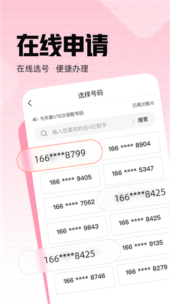 联通小号app官方版是联通在线信息科技有限公司开发的一款号码隐私保护工具的生活服务类软件。在软件中用户可以不用换卡就能申请多个副号,用副号接打电话、收发短信,避免主号泄露。软件为用户提供安全稳定的多号使用体验,支持勿扰设置,还可以设置黑名单拦截。软件内有在线选号的功能,用户可以自由选择自己的号码。此外,软件还可以设置定时开关机,能有效减少骚扰,保护个人的信息安全。