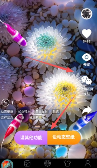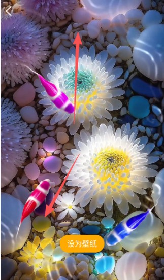 2、支持动态3D锦鲤效果,呈现鱼儿游动画面,搭配上千张高清壁纸及水波光影,营造沉浸式体验。