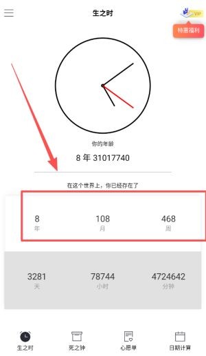 4、死之钟功能可预测寿命,提供死亡倒计时、生命倒计时服务,直观展示剩余时光。