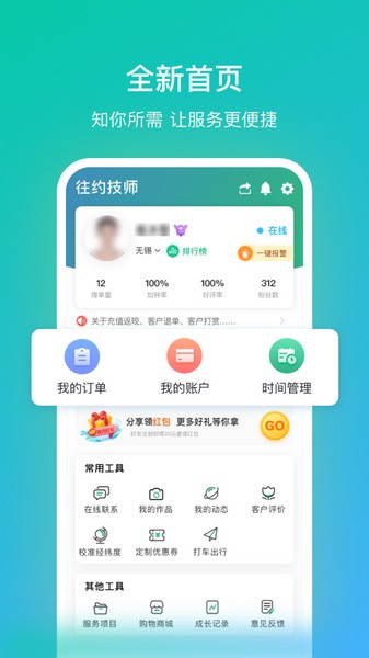 2、可以对软件进行分享,让更多的技师可以使用软件进行接单;