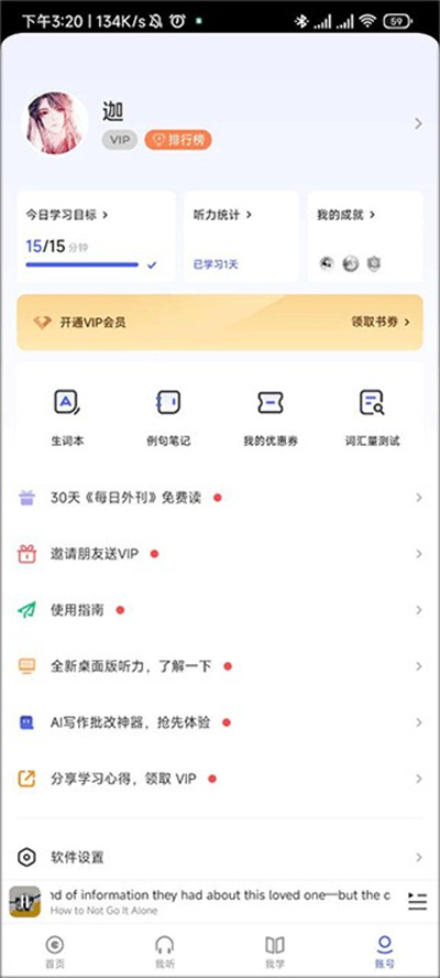 3、免费学习资源:平台内所有听力学习资源均可免费使用,可自由搜索所需学习内容,无需额外付费。