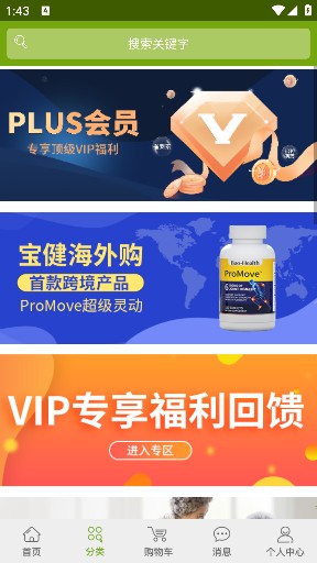1、先下载安装宝健商城 app,通过手机号或账号完成登录,即可进入平台。