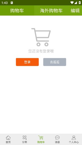 2、登录成功后进入首页,可看到首页、分类、购物车、消息、个人中心五大板块。