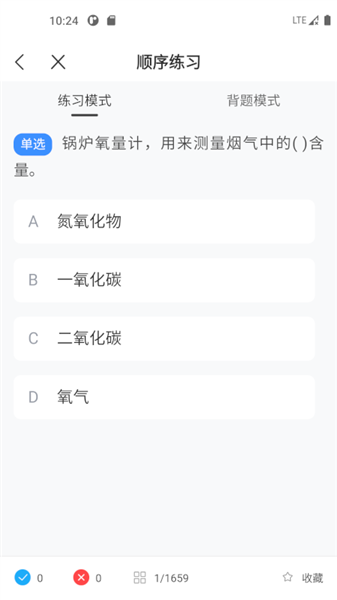 用户可以选择顺序练习、模拟考试、错题回顾等多种学习模式进行刷题练习。