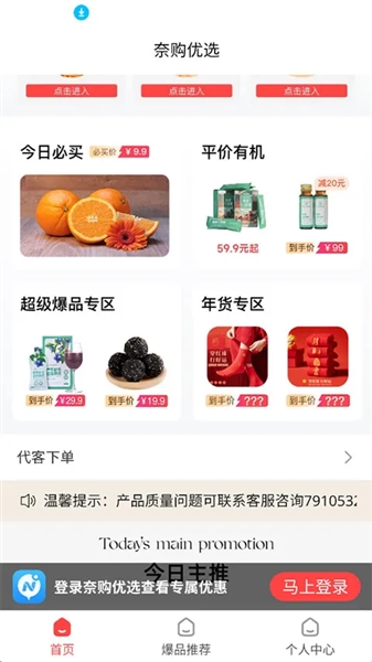 1、在线下载并打开奈购优选APP,完成登录就能直接在线找物购物;