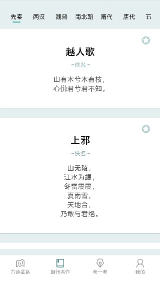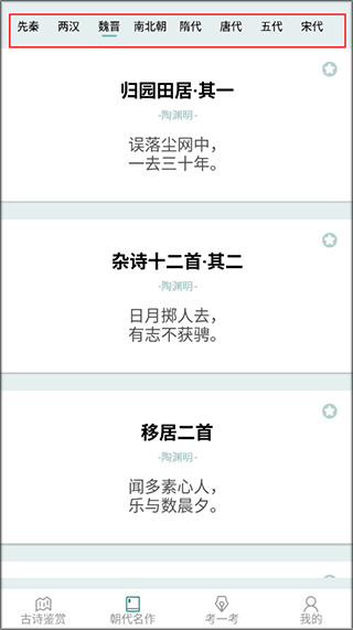 2、点击朝代名作板块,能够查看不同朝代的各类古诗词,分类清晰便于查找。