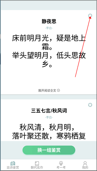 1、下载安装多多高手app,进入软件后点击故事鉴赏,可观看大量古诗,点击右上角五角星可收藏。