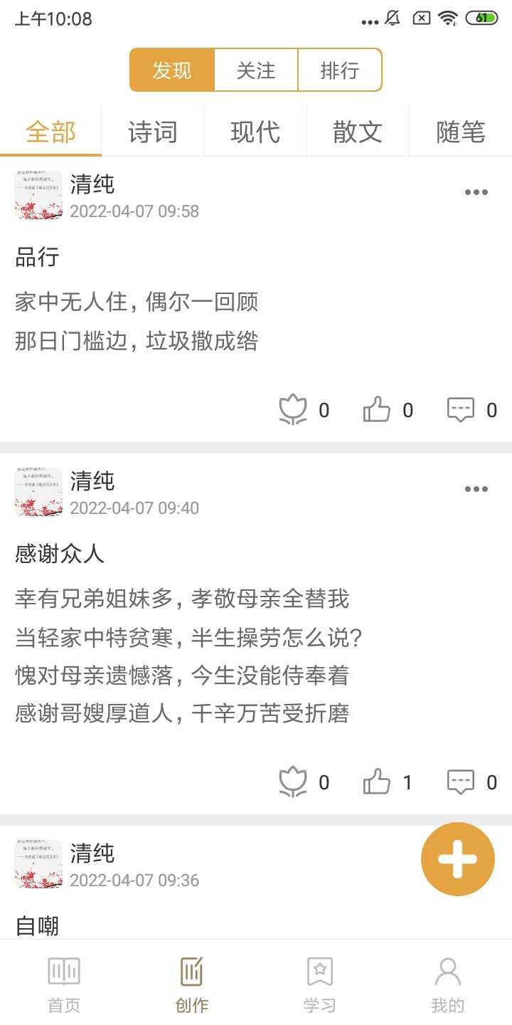 3、支持发表诗词、点赞关注、互动收藏等功能,让原创诗作被更多人看到、欣赏。