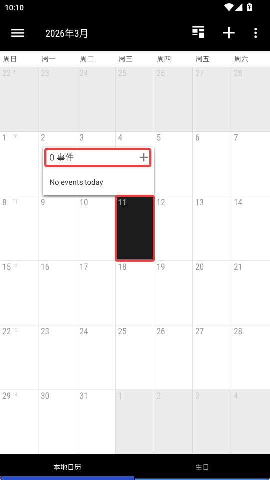 1、点击一个日期,选项+添加事件