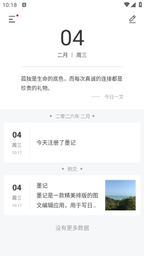 1、墨记日记是一款主打精美排版的日记、笔记类应用,兼顾实用性与美观度。