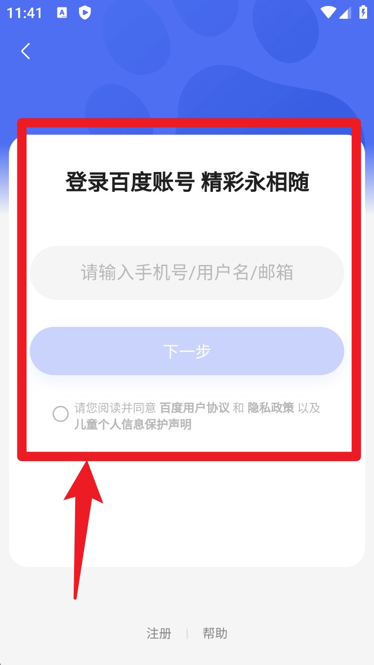 1. 打开App进入注册页面,输入手机号并勾选协议,点击立即注册创建百度账号。