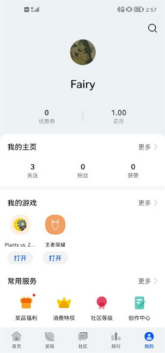 1、首先需进入华为游戏中心App当中,找到对应操作入口。