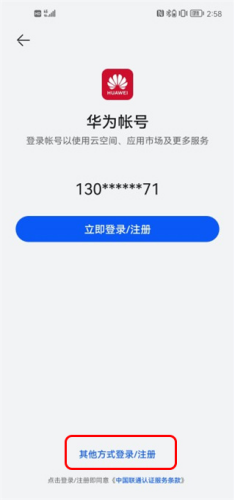 2、选择页面下方的其他方式登录/注册,即可切换至其他账号。