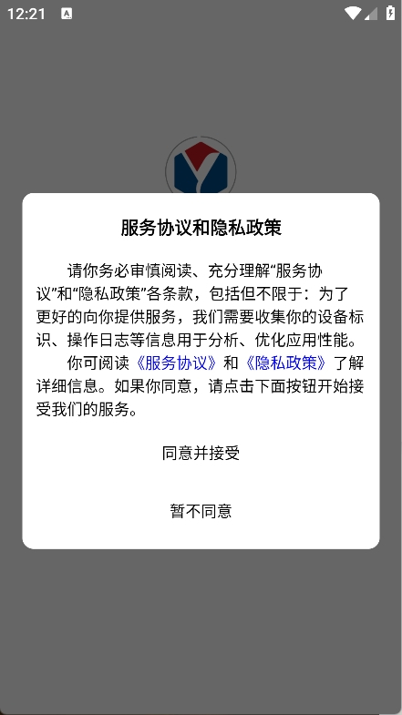 1、下载并安装APP,点击同意并接受,即可进入主页面;