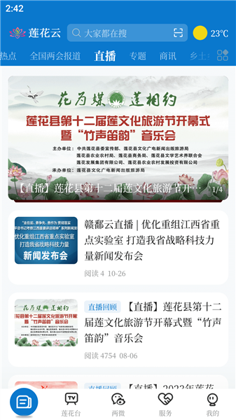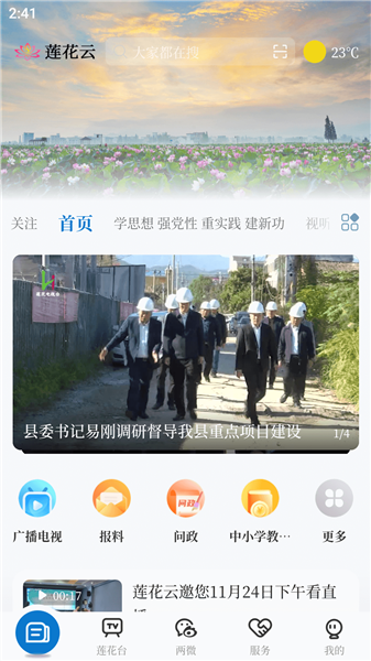 莲花云是一款专为莲花县当地人民打造的一款生活服务类软件,集新闻、政务、服务于一体,致力于为用户提供优质的综合性服务体验。这里每天都会推送多种类型的新闻内容,包括体育,政治、民生等多种类型,会以广播、视频直播等多种形式发布,用户可以根据自己的阅读习惯与喜好内容自由选择新闻阅读。此外还有多个生活服务功能,让用户的生活更加轻松便捷。