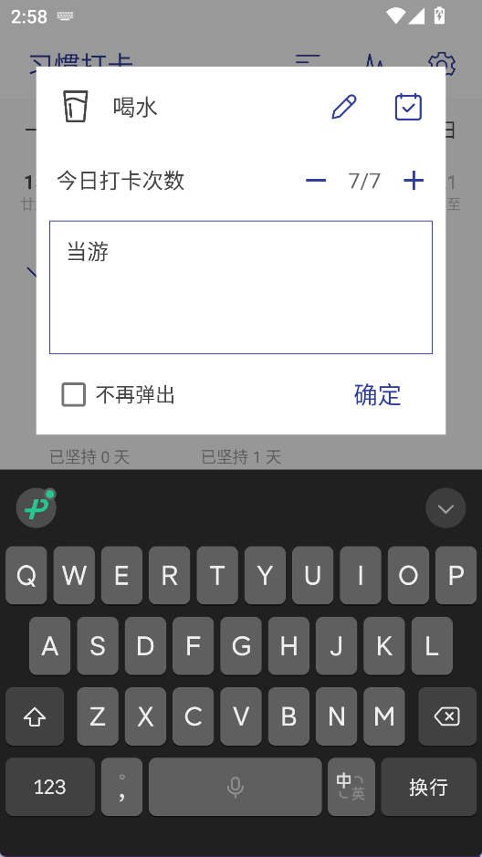 2、输入打卡日志后完成打卡