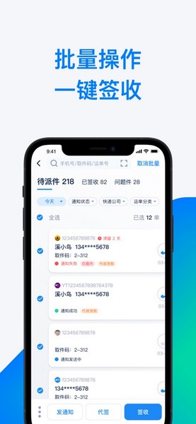 可根据运单号、手机号查询快件状态和轨迹,支持批量操作