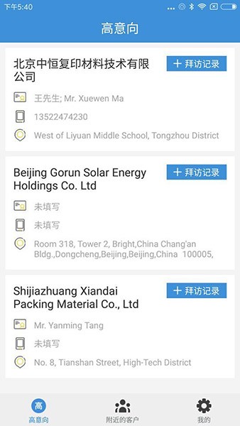 4.以准确查找附近的客户,添加高意向或是公海客户操作;