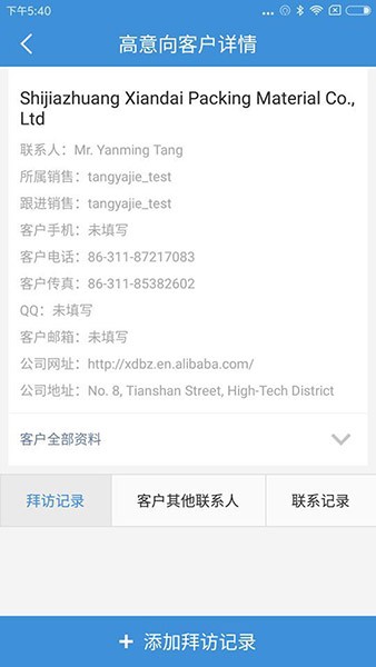 3.每次的拜访跟进都可以系统的记录下来,添加拜访记录,规范管理数据资料;