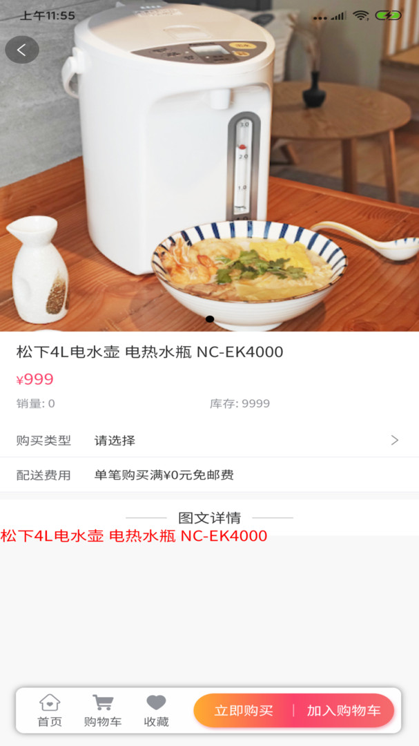 3、点击商品进入详情页,可选择收藏或加入购物车;