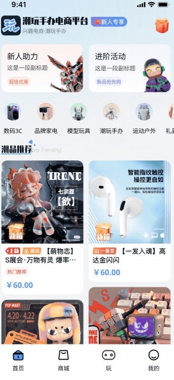1、商品覆盖潮玩、数码、服饰、美妆等多个热门品类,选择丰富;