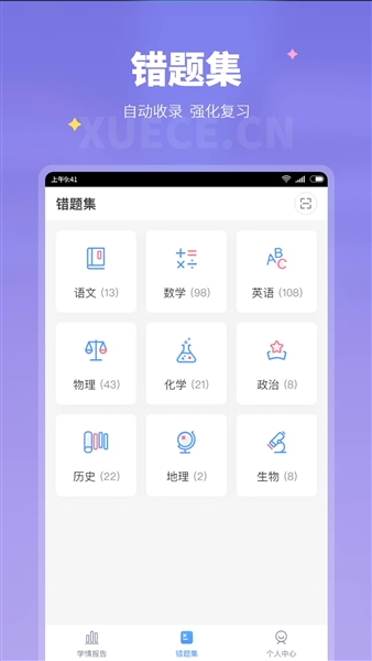 为用户提供了线上专属的错题集,进而可以在线查看各科错题。