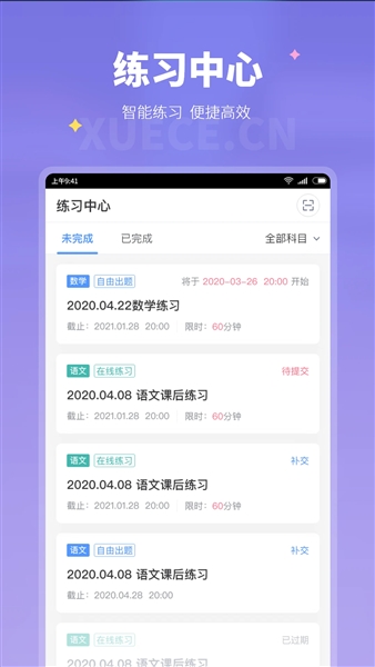 平台提供了线上专属的练习中心,对相关的科目题目可以在线练习提交。
