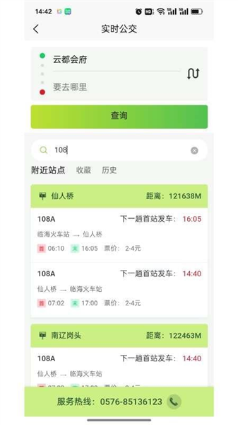 3、实时公交界面可输入起止地点查询路线,亦支持站点搜索。