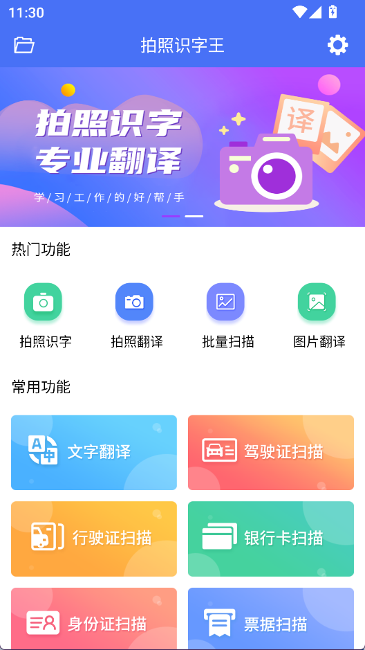 拍照识字王是一款文字扫描识别应用,面向需要将文字快速转为电子文本的使用者,如纸质文档、证件或图片中的文字,通过手机摄像头完成高质量的文档扫描,自动优化图像去除杂乱背景,生成清晰的电子文件,让繁琐的纸质处理变得简单高效。