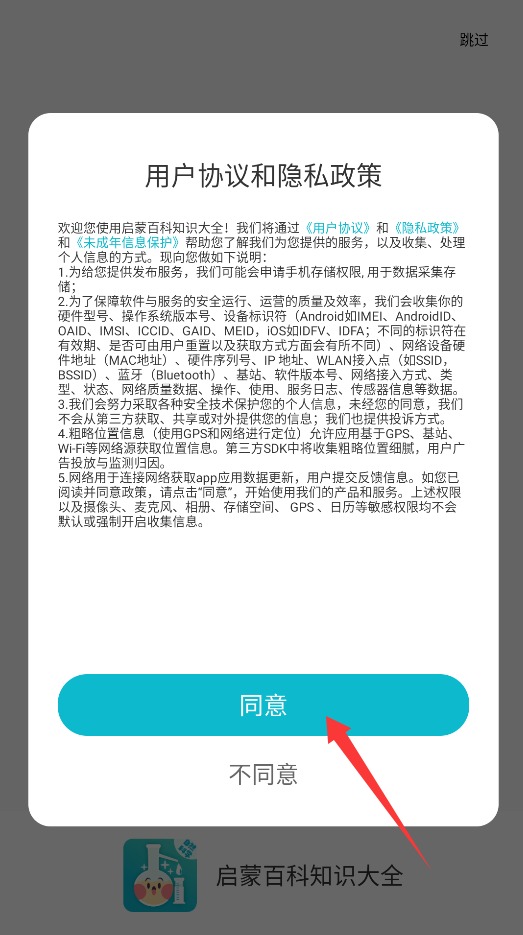1、打开APP之后,首次使用需同意用户协议和隐私政策,点击同意进入主界面。