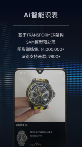 3D黑科技打造沉浸体验:360°旋转赏表,还原金属拉丝与陶瓷哑光细节;AR试戴智能匹配手腕尺寸;深度解析工艺,联动10万+腕表库数据库,AI同步追踪实时行情,时研家平台提供一站式解决方案!