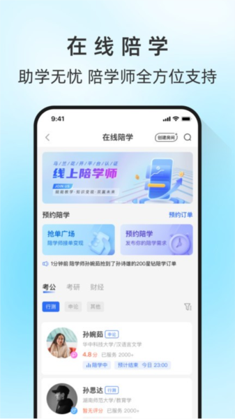1、知识变现服务:开放陪学师认证通道,为在校学生、职场人士搭建知识变现桥梁。