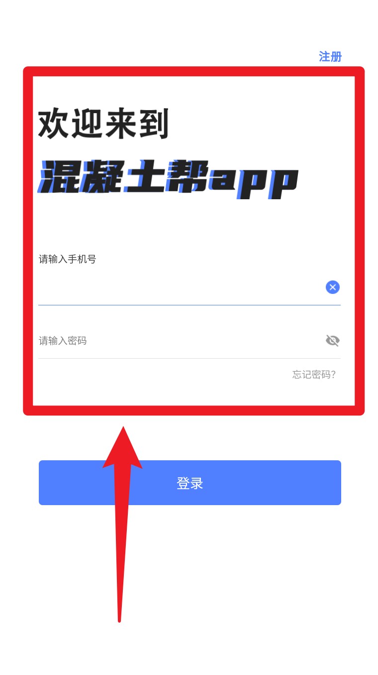 2. 若已有帐号,点击右上角登录,跳转至登录界面,输入手机号与密码后点击蓝色登录按钮即可进入系统。